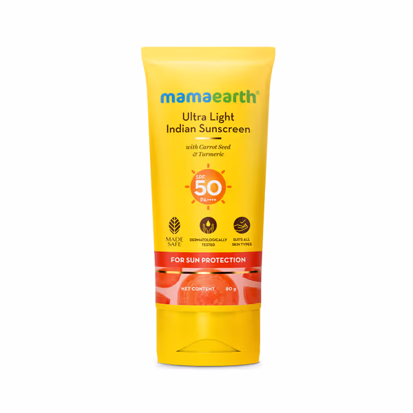 ✨ প্রতিদিন সূর্যরশ্মি থেকে সুরক্ষা ও হালকা উজ্জ্বল ত্বকের জন্য – Mamaearth Ultra Light Indian Sunscreen।